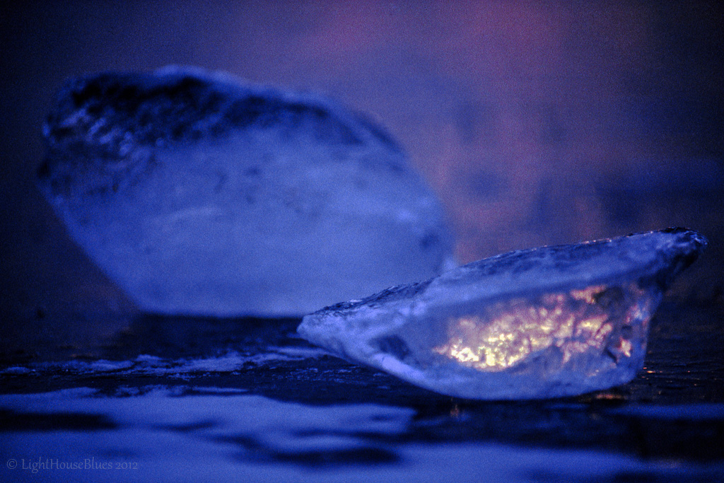 Sunset indide a piece of ice