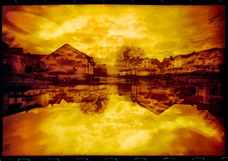 To help me with this, I used my little Lomo LC Wide, a true wonder with a 17 mm Minigon Ultra-Wide Angle lens, and a MX button that is making a double exposure very simple; push the shutter button, push the MX button, take one more exposure, in this case I just put my camera up side down for the second exposure.