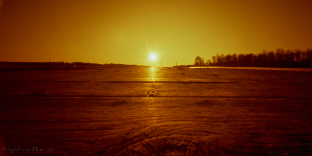 Pinholed sunset in redscale