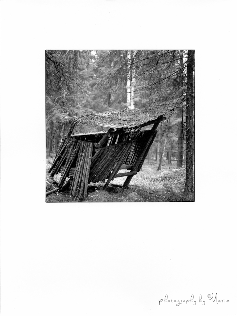 These two shows a hunters hiding place that has passed its best before date some time ago, deep inside a forest which I and my family often visited.