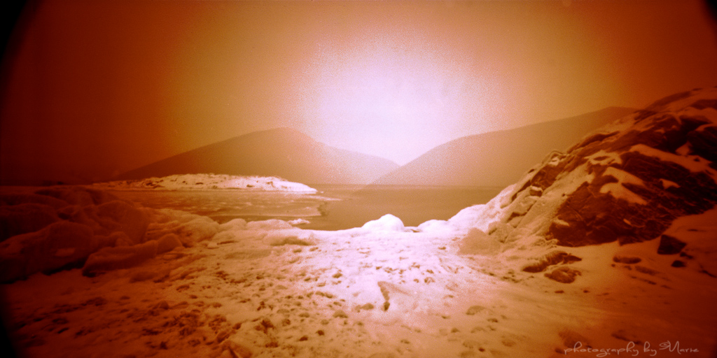 Getting a bit bored whit this never ending winter we’ve been “blessed” with this year, I took my (at the moment) favourite pinhole camera, loaded it with Lomography Redscale film, and went……